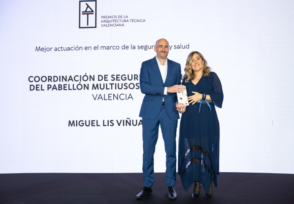 El arquitecto técnico Miguel Lis Viñuales ha recibido el galardón a la Mejor actuación en el marco de la seguridad y salud, por la coordinación de la seguridad en la obra del Pabellón multiusos Roig Arena, en Valencia, «un hito en la gestión preventiva de grandes obras», destaca el jurado. «En una obra con más de 1.400 trabajadores diarios en sus picos de actividad, 136 empresas contratistas y cientos de subcontratas, Miguel Lis Viñuales ha coordinado la seguridad y salud del Roig Arena con dedicación constante, presencia continuada y rigor técnico.