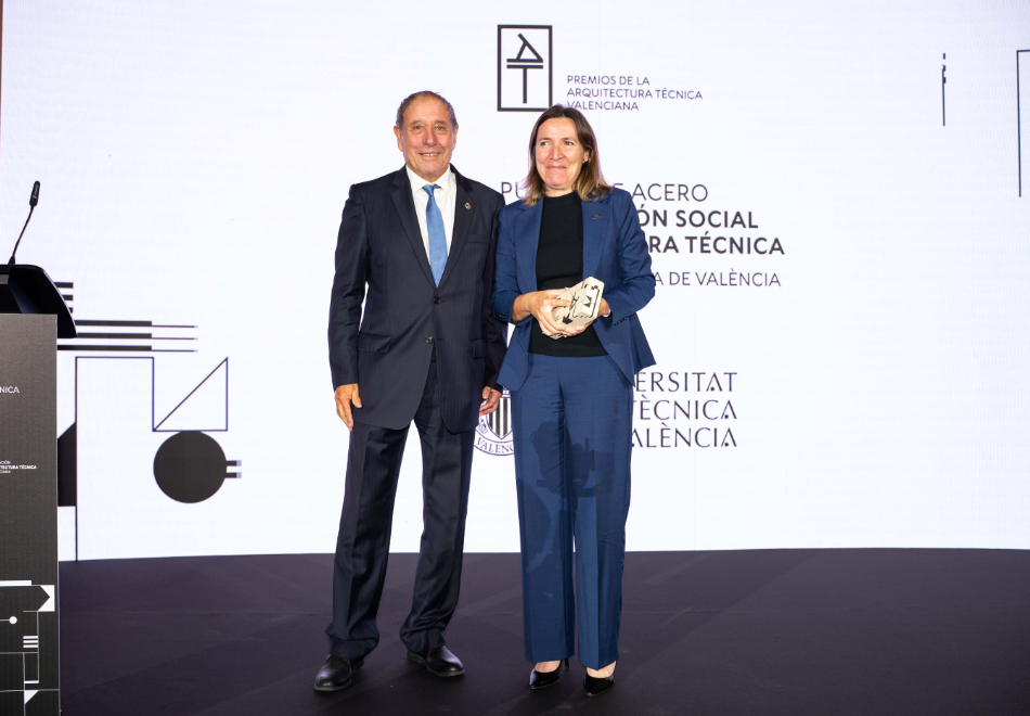 El Puntal de Acero a la proyección social de la arquitectura técnica ha recaído en la Universitat Politècnica de València, como referente académico y motor de innovación. «Entre sus iniciativas más destacadas figura la Cátedra Observatorio de la Vivienda, creada en colaboración con COAT Valencia, que se ha consolidado como un referente en el análisis del mercado inmobiliario valenciano».