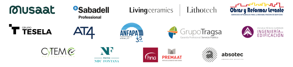 Los II Premios de la Arquitectura Técnica Valenciana están convocados y organizados por COAT Valencia y la Fundación Arquitectura Técnica Valenciana y cuentan con el patrocinio de empresas e instituciones del sector: Musaat, Sabadell Profesional, Obras y Reformas Levante, Livingceramics, Grupo Tesela, AT4, Grupo Tragsa, ETSIE Valencia, Anfapa, hna-Premaat, Absotec, Cytem y Marina Nou Fontana.
